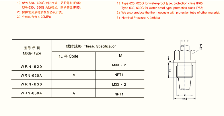 FTR-306 固定螺纹锥式热电偶