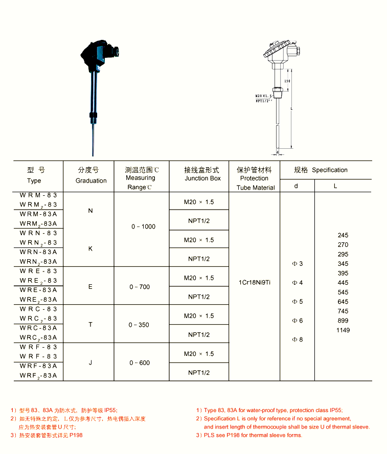 通常和显示仪表、记录仪表、电子计算等配套使用。直接测量各种生产过程中的0°C~1300°C范围内液体、蒸汽和气体介质以及固体表面温度。