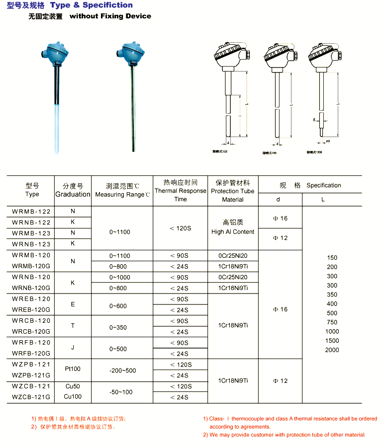 一体化热电偶主要包括: