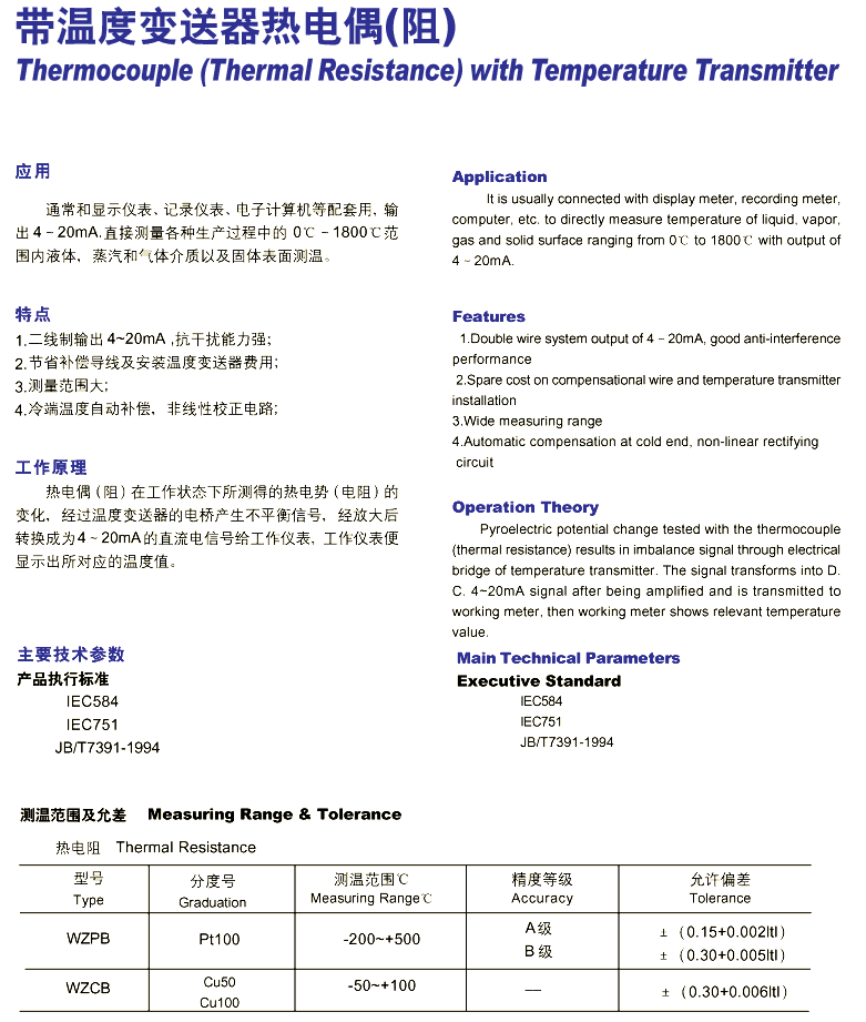 IEC584 IEC751 JB/T7391-1994