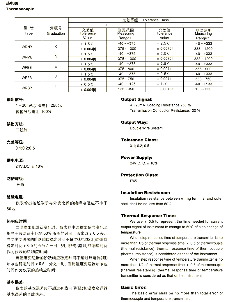 基本误差:仪表的基本误差应不超过热电偶(阻)和温度变送器基本误差的合成误差。