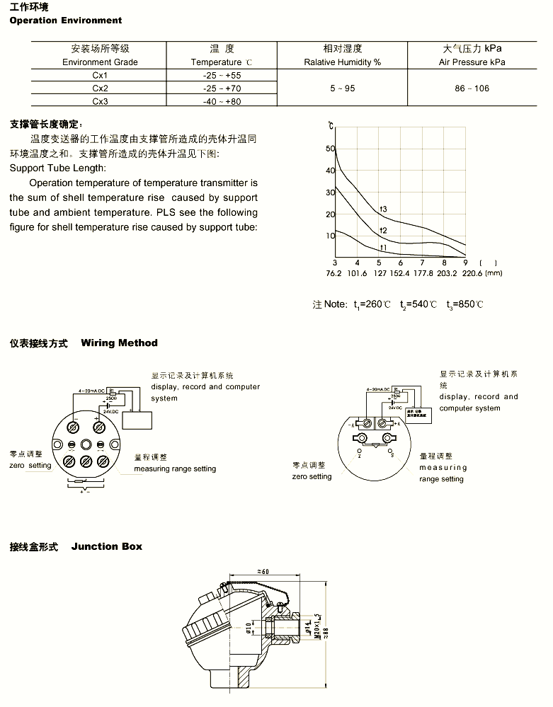 输出信号:4~20mA,负载电阻250 1/2、传输导线电阻100 1/2