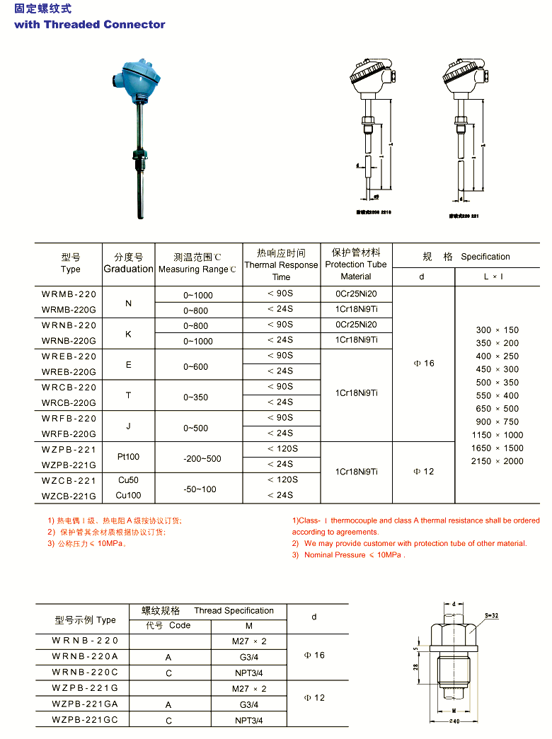 一体化热电偶测量范围及温差:(http://www.fx-sensor.com 010-51295202) |