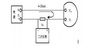 说明:一般电源电压Vs选用24V,负载电阻RL选用250Ω,这样当回路中通过4~20mA电流时,RL上的电压降为1~5V。如果Vs和RL选用别的数值,那么RL值不能超过由公式RL=(Vs-13)/0.02计算得到的数值。