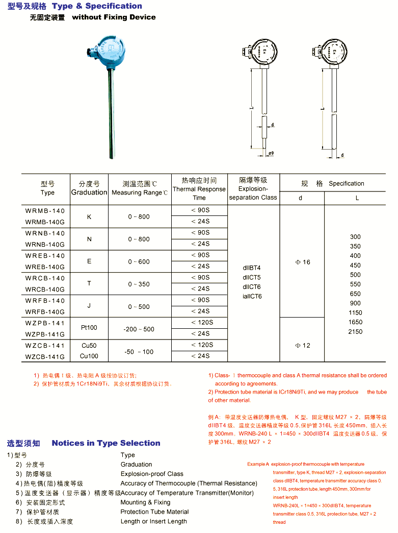 FTT-201 一体化无固定装置防爆热电偶(阻)