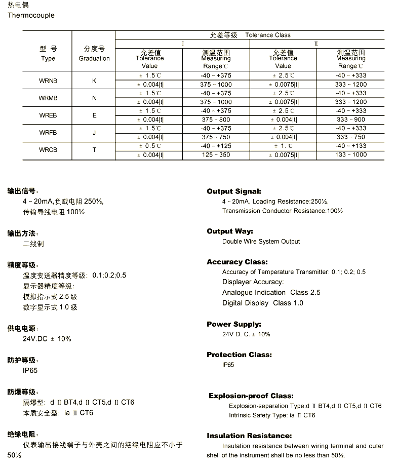 基本误差:仪表的基本误差应不超过热电偶(阻)和温度变送器基本误差的合成误差。
