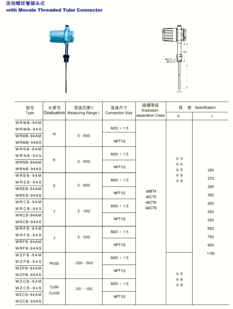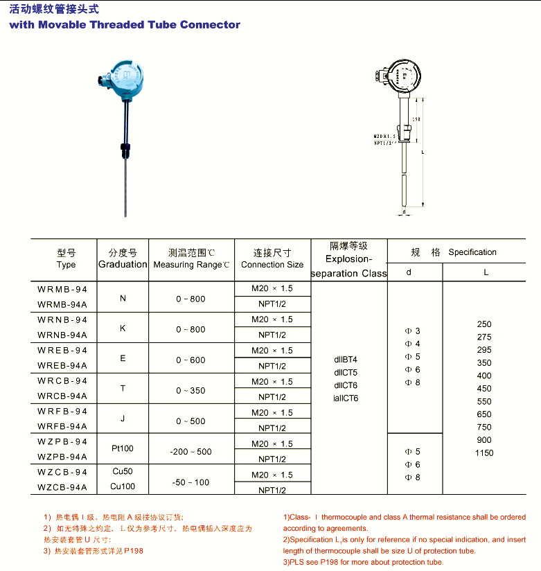 FTT-206 一体化活动螺纹管接头式防爆热电偶(阻)