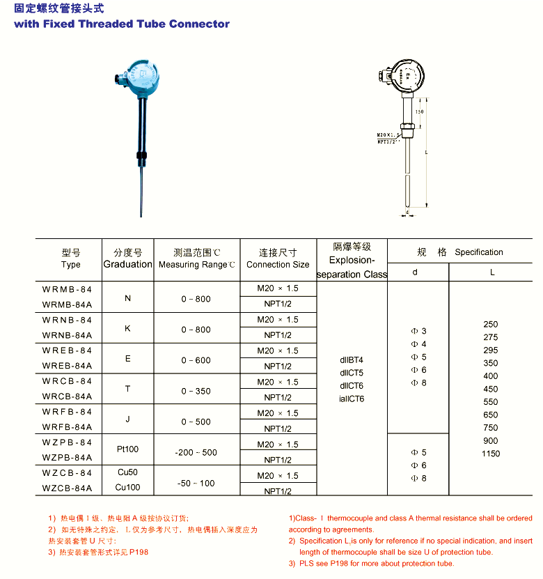 一体化热电偶测量范围及温差: |
