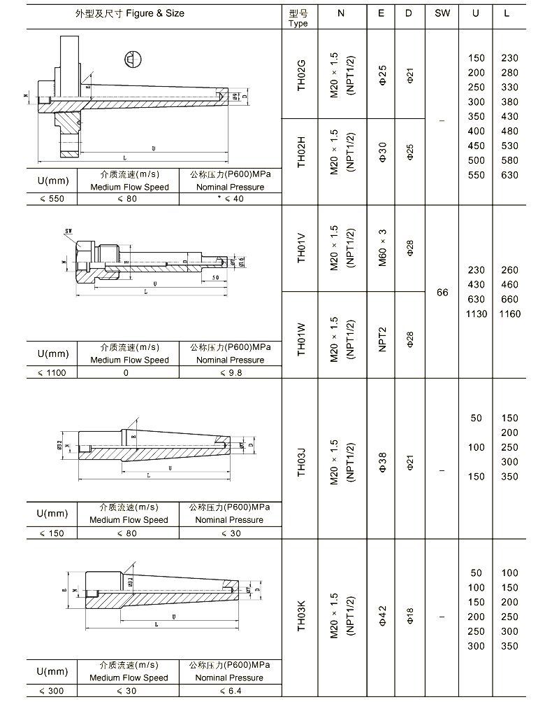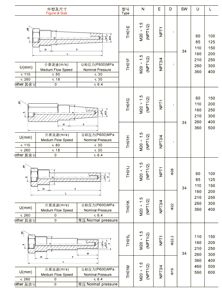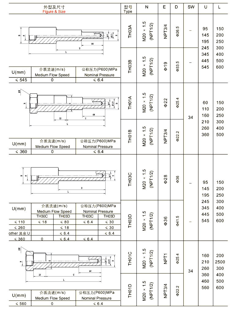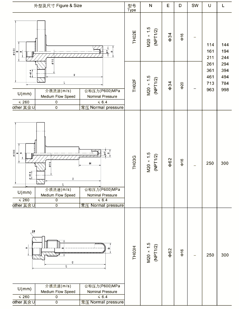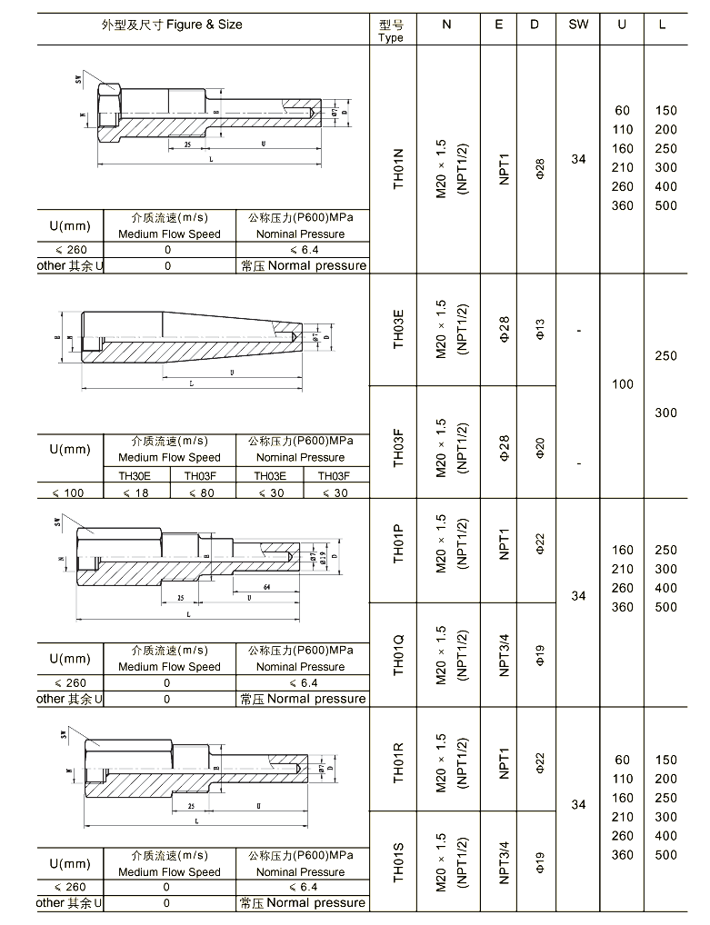 与两节式热电偶/热电阻和双金属温度计配套使用,保护热电偶/热电阻和双金属温度计正常工作。且可用于高压高流速场合。