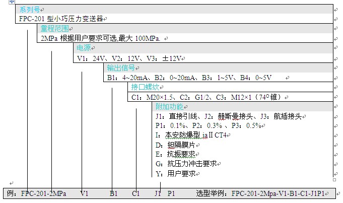 FPC-201型采用扩散硅压力芯体作为敏感元件,内置处理电路将传感器毫伏信号转换成标准电压﹑电流﹑频率信号输出,可直接与计算机、控制仪表﹑显示仪表等相连。可进行远距离信号传输。FPC-201型采用一体化全不锈钢结构,经过多次不锈钢焊接,实现了全固态设计,在恶劣环境中可以长期使用。产品安装方便,具有极高的抗振性和抗冲击性。广泛应用于工业自动化设备配套及石油、化工、冶金、电力等过程控制领域。