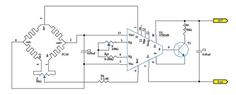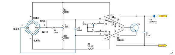 XTR105电路是相当好的两线4-20mA专用仪表电路,但唯一的缺点是电路本身不带调零电路,这样给应用带来极大的不便,采用传统的传感器4线外调零的方法固然可以达到调零的目的,但是这样破坏了传感器温度补偿平衡,在某些场合会出现温度漂移过大,调零和调满相互影响较大。5线传感器是根据传感器温度补偿原理,调零采用传感器本身调节的方式,有诸多优点: