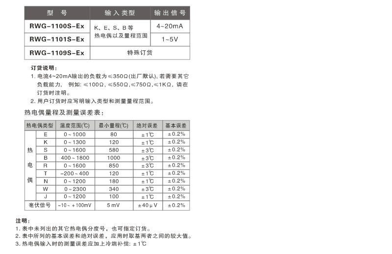 RWG-110□S-Ex模拟热电偶输入隔离安全栅一入一出