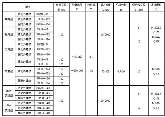 2.FTW-106A带变送器液晶显示温度计技术参数