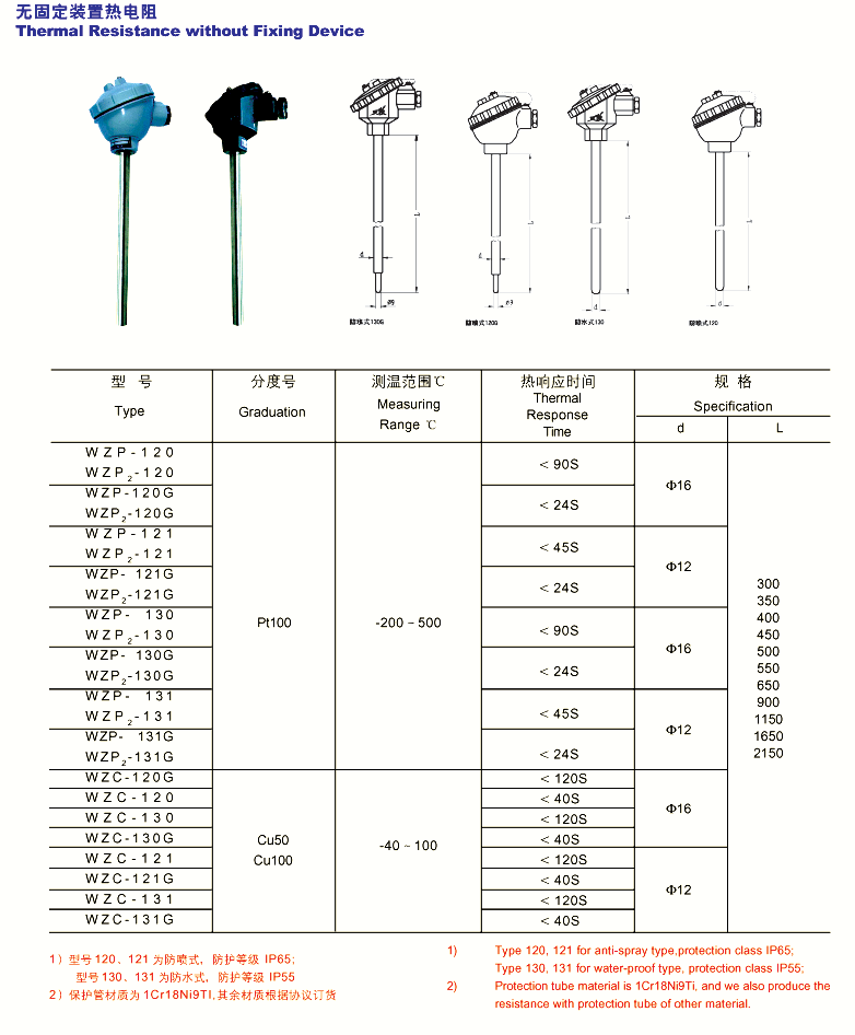 WZP系列铂热电阻按我国新标准JB/T8622-1997进行生产。由于该系列产品具有结构小,使用范围广、可靠性好、热响应时间短等优点,可形成多品种、多规格的系列产品为石油、化工、电站、冶金、轻工、食品、纺织、医疗卫生、科研、农业以及机械行业提供新一代优质产品。