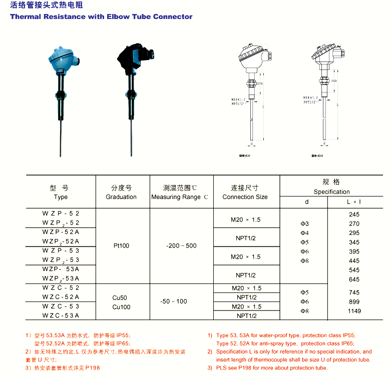 直接测量各种生产过程中的-200℃~500℃范围内液体、蒸汽和气体介质以及固体表面测温。