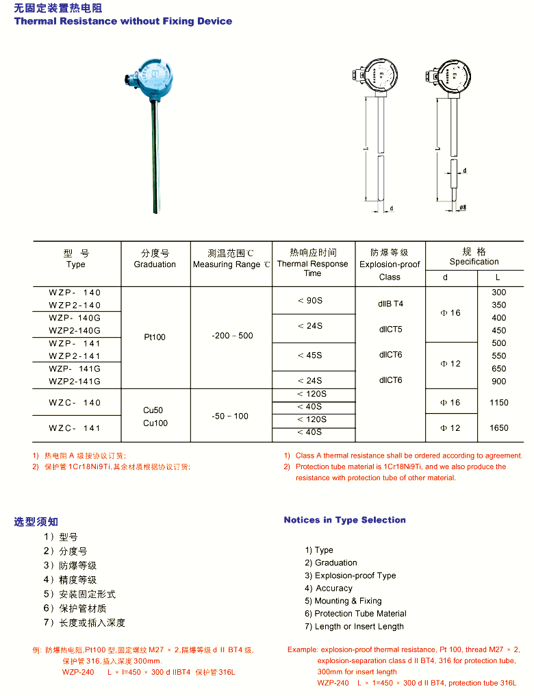 注:1.WZP-035S采用引进元件WAP-014S。精度等级:B