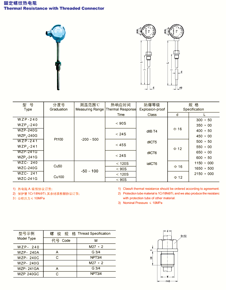 注:1.WZP-035S采用引进元件WAP-014S。精度等级:B
