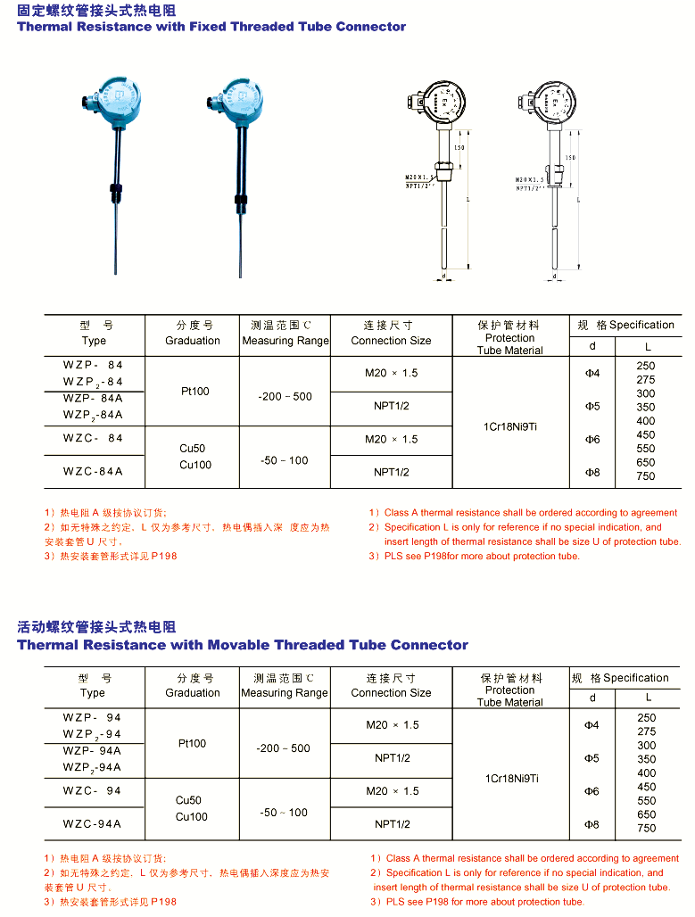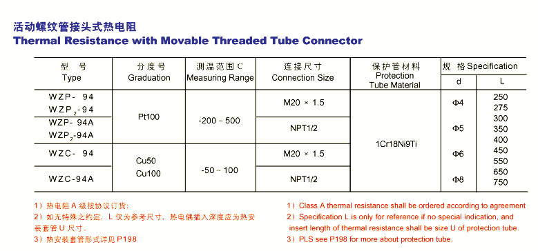 注:可作可拆式铂电阻更换元件。