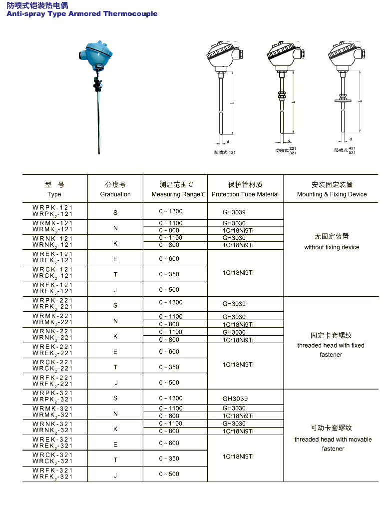 2、特 点 ·热响应时间少,减小动态误差; ·可弯曲安装使用; ·测量范围大; ·机械强度高,耐压性能好; 3、工作原理 铠装热电偶的电极由两根不同导体材质组成。当测量端与参比端存在温差时,就会产生热电势,工作仪表便显示出热电势所对应的温度值。