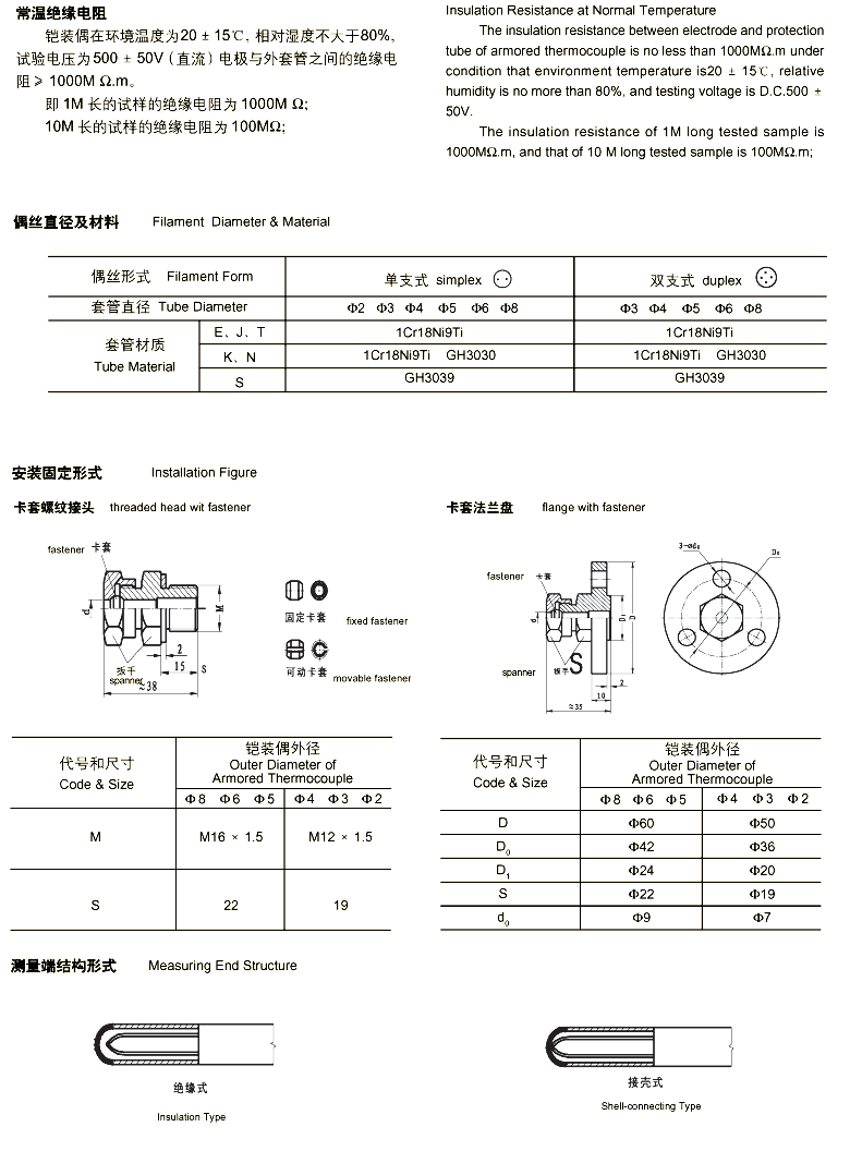 6、常温绝缘电阻 铠装偶在环境温度为20±15°C,相对湿度不大于80%试验电压为500±50V(直流)电极与外套管之间的绝缘电阻>1000MΩ。 即1m长的试样的绝缘电阻为1000MΩ;