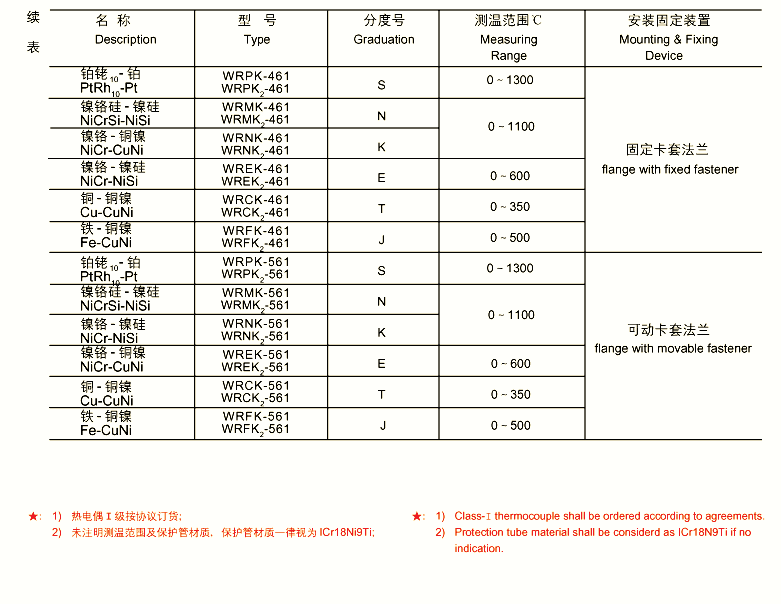 4、主要技术参数 产品执行标准 IEC584 IEC1515 GB/T16839-1997 JB/T5582-91