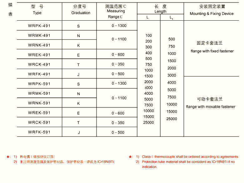 4、主要技术参数 产品执行标准 IEC584 IEC1515 GB/T16839-1997 JB/T5582-91