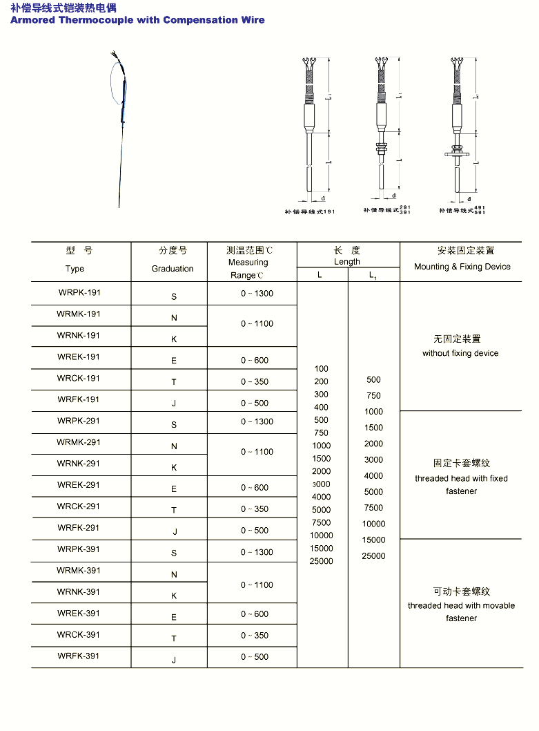 2、特 点 ·热响应时间少,减小动态误差; ·可弯曲安装使用; ·测量范围大; ·机械强度高,耐压性能好; 3、工作原理 铠装热电偶的电极由两根不同导体材质组成。当测量端与参比端存在温差时,就会产生热电势,工作仪表便显示出热电势所对应的温度值。