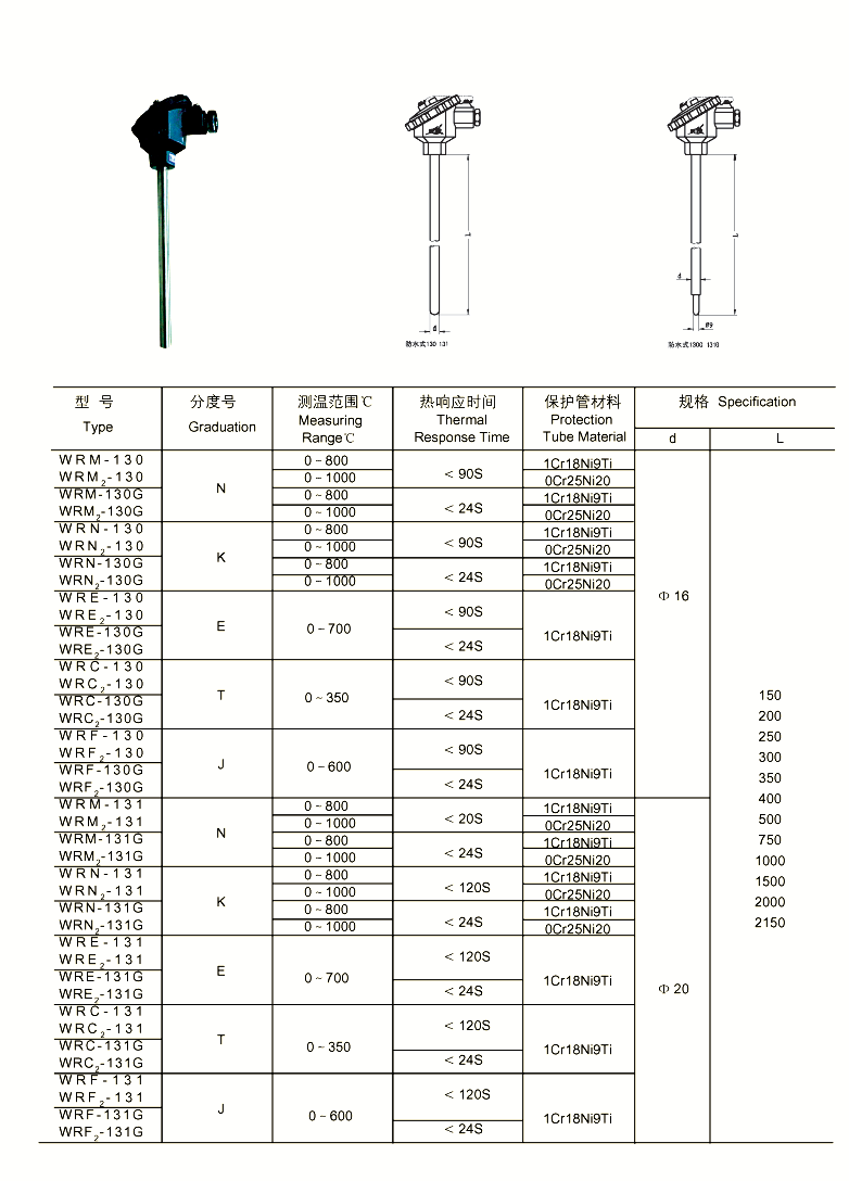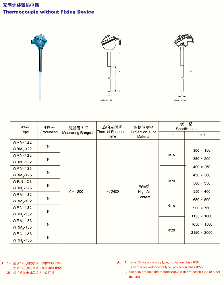FTR-302 无固定装置热电偶