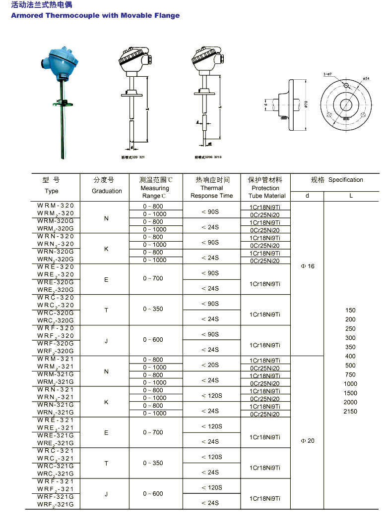 活动发兰铠装热电偶,WR_K系列铠装热电偶是本厂精心设计制造的新一代系列产品。本系列产品符合国际电工委员会(IEC)标准,技术性能可替代同等现代化设备和高科技领域,也适合于进口成套设备的维修更换或输出项目的成套配套以及技术改造项目的配套。 本厂生产的系列产品规格齐全,质量可靠,并热忱为用户服务。 铠装热电偶与一般工业热电偶一样,与显示仪表等配套,在一定的使用范围内对气体、液体介质或固体表面温度进行自动检测或自动调节。