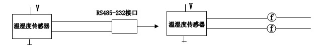 (电流输出型传感器湿度或温度只取一路时,另一路应负载接地。)